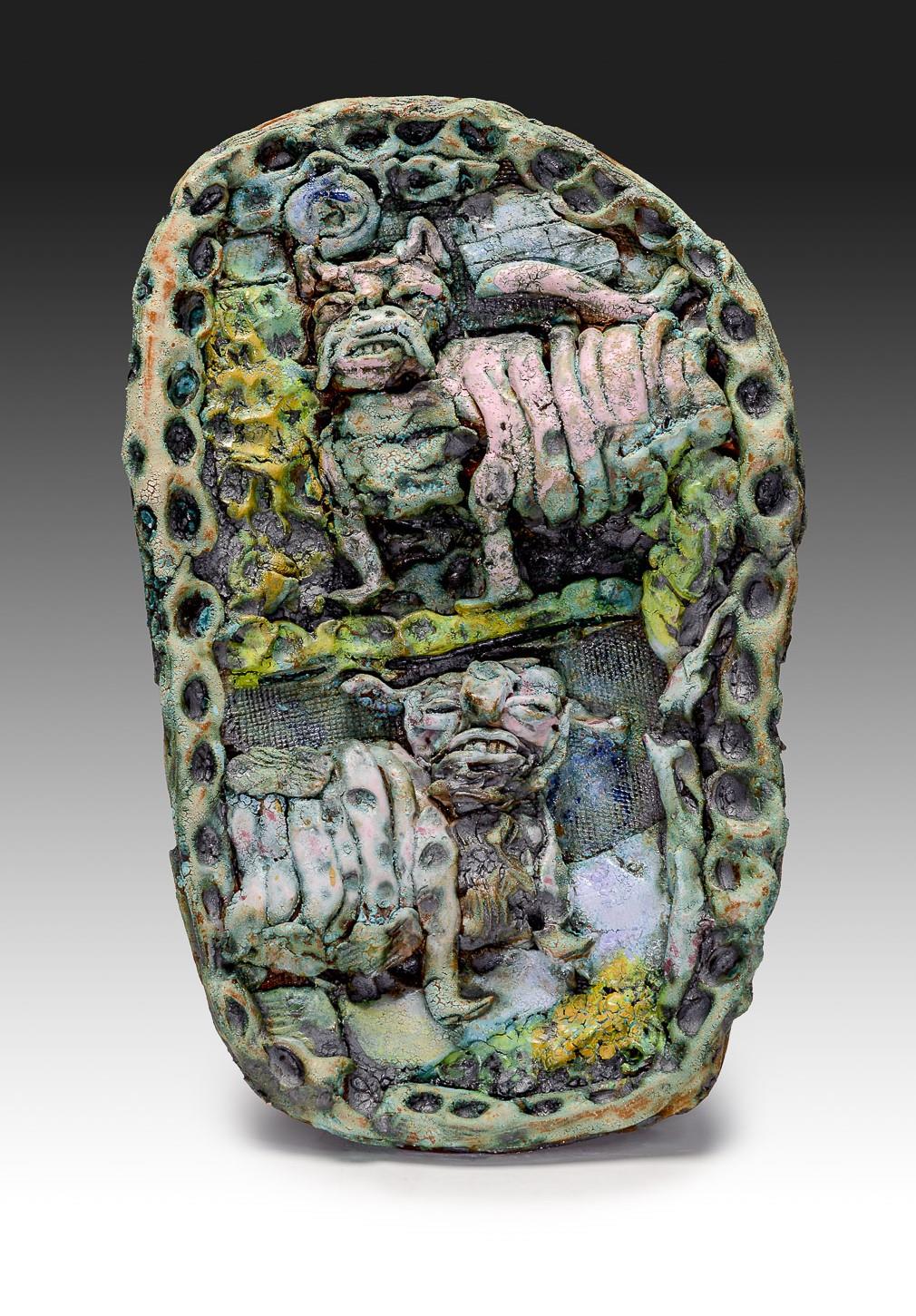 Following graduate studies, Leonard briefly taught foundations courses at his alma mater, UTPA, and began to show in larger circles while juggling teaching, a family of four with pets piled on top, and the fits and starts of finding time and space to make a productive studio practice. Chris joined the South Texas College art faculty in 2009 following service as a sabbatical replacement in the UTPA ceramics department extended into a stint as a full-time lecturer from 2006-2009. Leonard now teaches ceramics at the South Texas College’s Pecan Campus and has helped to coordinate their South Texas Ceramic Showdown for the past decade and a half featuring collaborative talent shown from participating schools in and outside of the Lone Star State alongside workshops and exhibitions from established ceramic artists from near here to pretty far out there. As the twenty-first century deepens, work that blends his Midwestern upbringing with media mixed in several directions continues to show fairly steadily near the Rio Grande, where he has now spent over half of his life, and at times travel beyond the border, too.