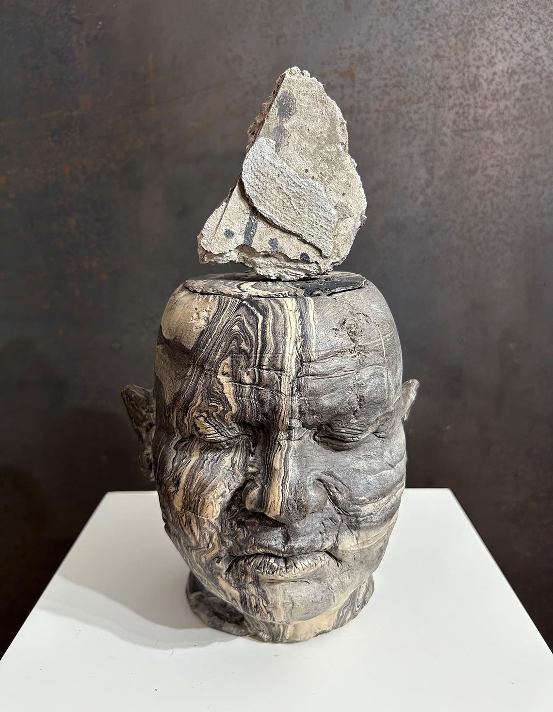 This new research trajectory was conceived during a 5-week artist residency at CRETA in Rome, Italy this past summer. This new work explores the materiality and longevity of the sculptural and utilitarian object as it pertains to permanence, impermanence and the evolving function of the monument. Although these works are not monumental in scale, they are an extension of my monolith series, where the ceramic surfaces are meant to emulate objects comprised of marble, granite and calcified limestone. For me, these forms are familiar, but the surfaces are a new kind of illusion to explore. Objects tell a story through surface, as they transform from raw material into refined sculptural objects. I am interested in that object's narrative as it outlives our own. A story colored by the abrasion of time, evidence of neglect or as a cherished heirloom.