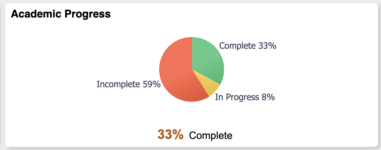 From your MyDelta homepage, look for the Academic Progress box. This will include a graph that displays a summary of your current progress towards completing your degree at Delta College.