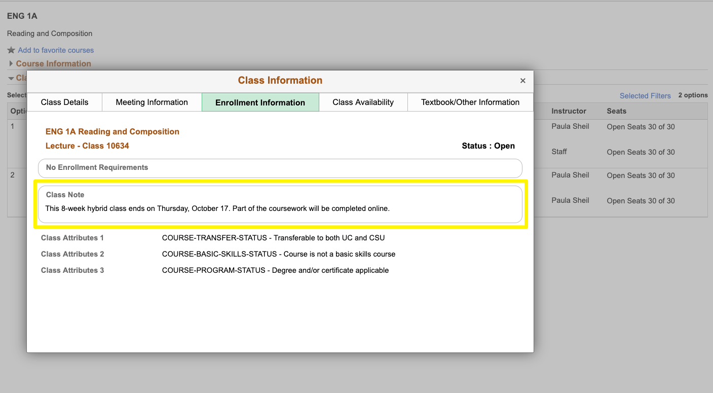 - Class Notes (Notes may include if the course is a hybrid of online and internet)
