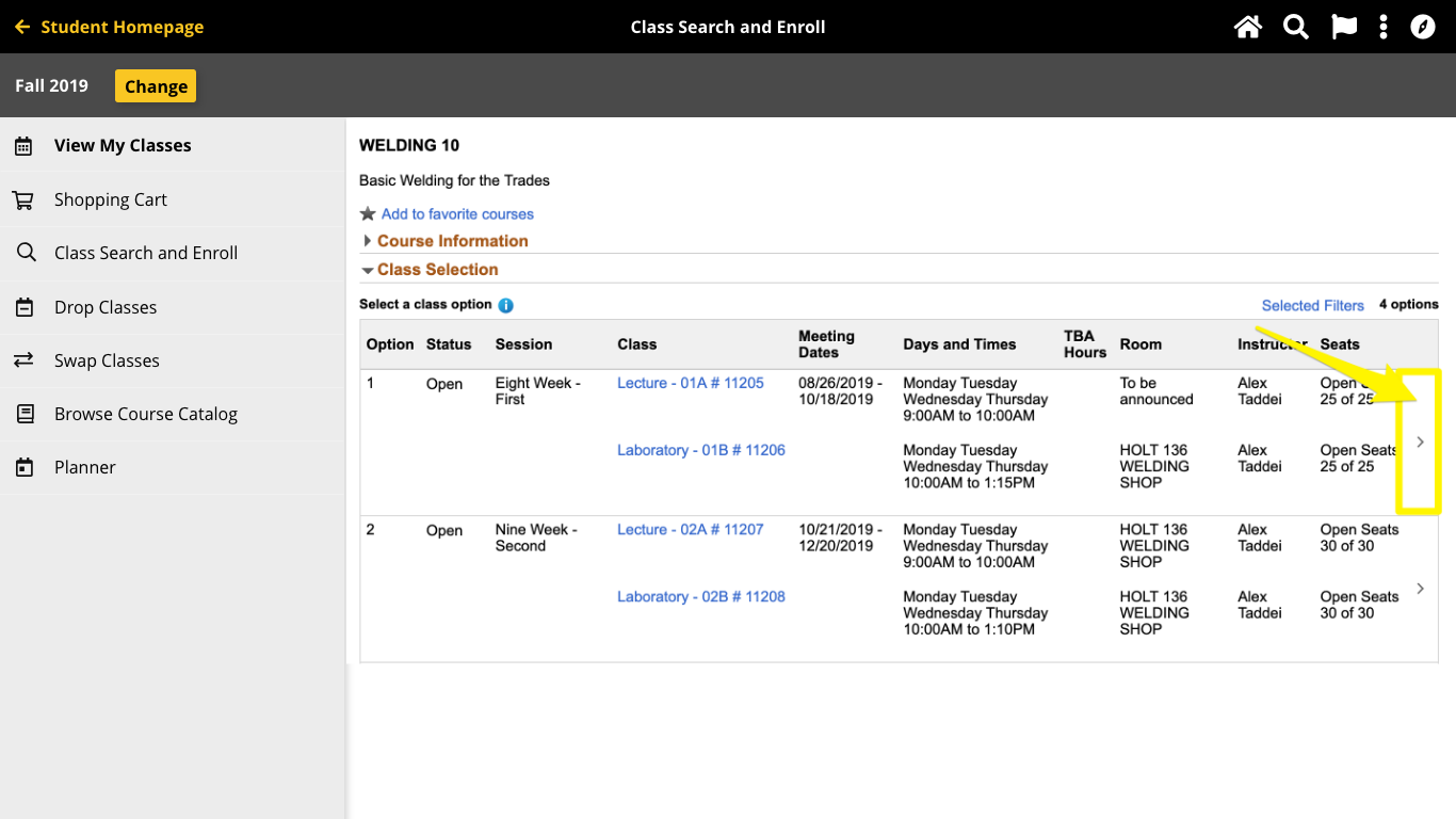 - You will see a notification at the top of the page confirming that the course has been added to your planner.