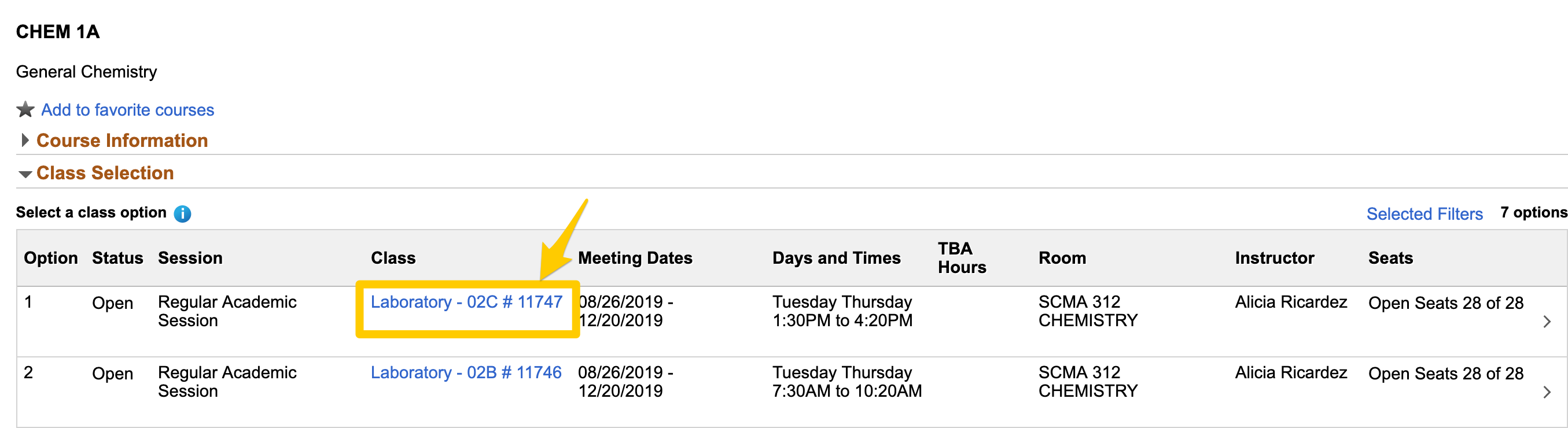 - Once viewing the course, click on the link under Class to open additional information about the class