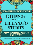 - Critically analyze the intersection of race and racism as they relate to class, gender, sexuality, religion, spirituality, national origin, immigration status, ability, tribal citizenship, sovereignty, language, and/or age in Native American, Black/African American, Asian American, and/or Chicana/o and Latina/o American communities.