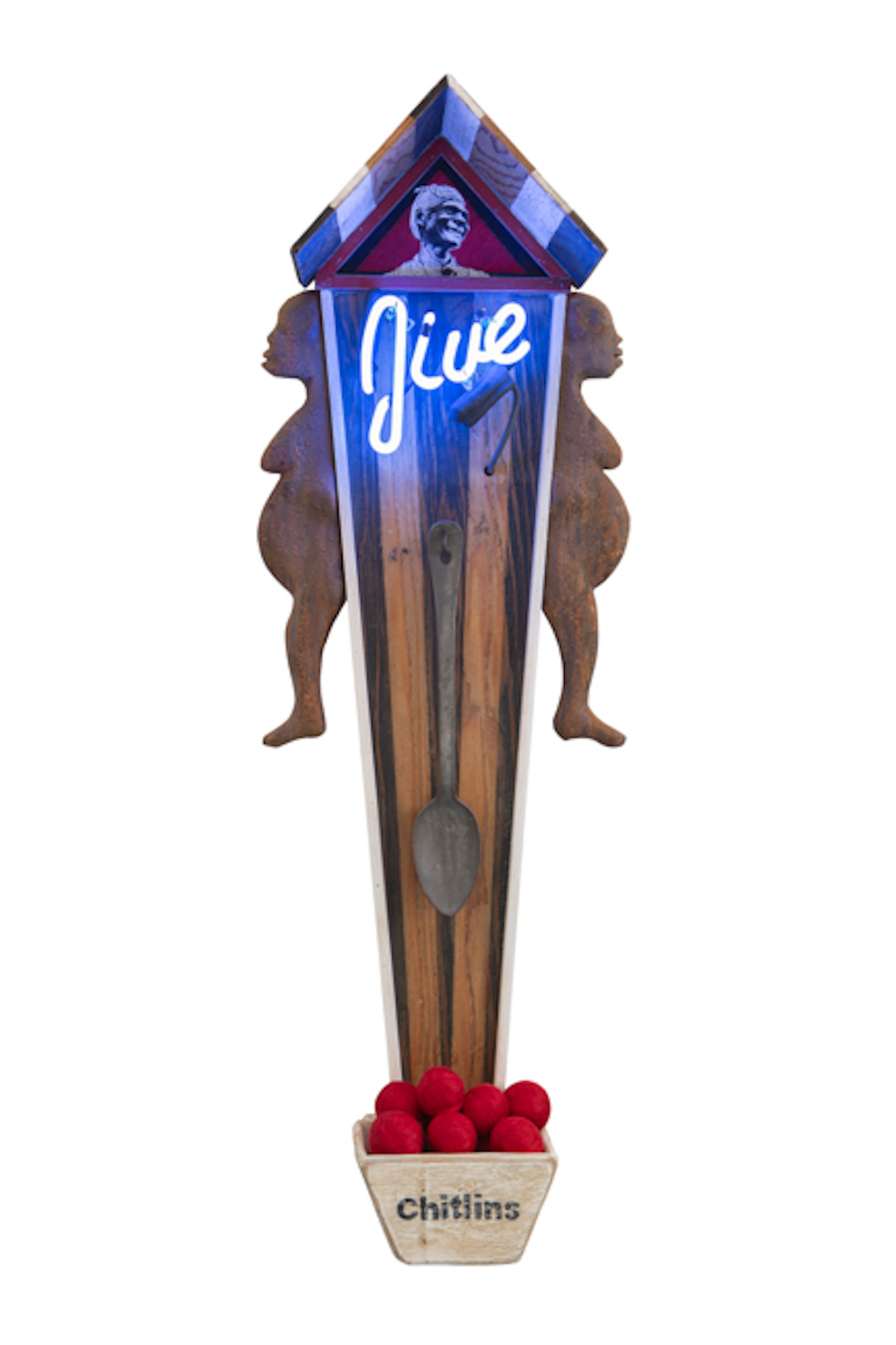 Carved wood, paint and neon glass