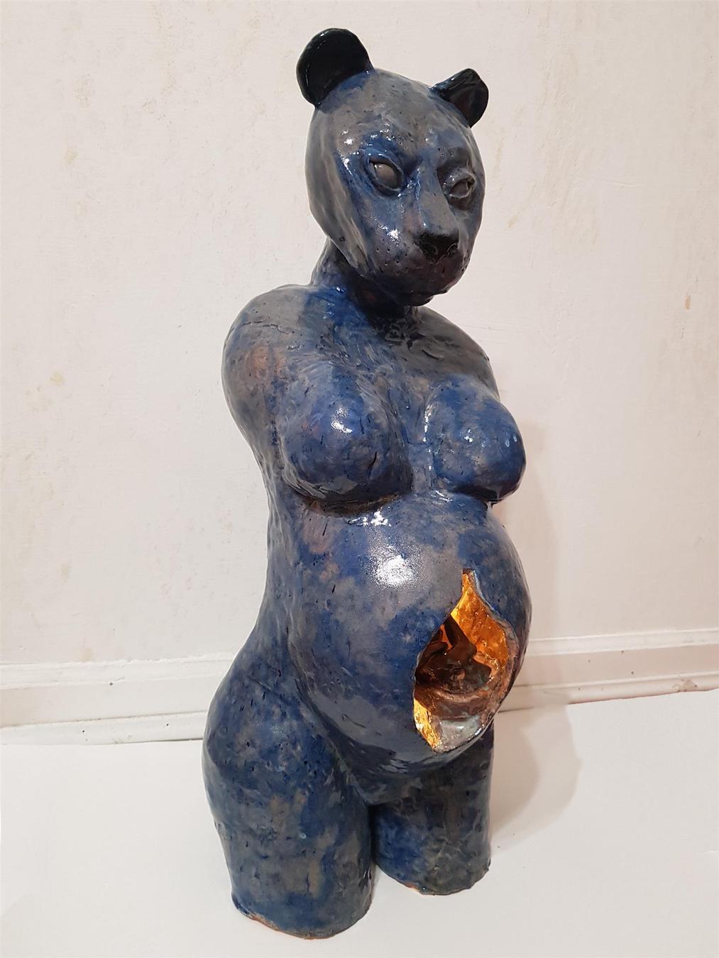 2023 Student Art Exhibition Blue Mother (2021) Stoneware, blue underglaze, kittens clear glaze. 26”h x 9”w x 9”d $500 < Previous Artist Next Artist >