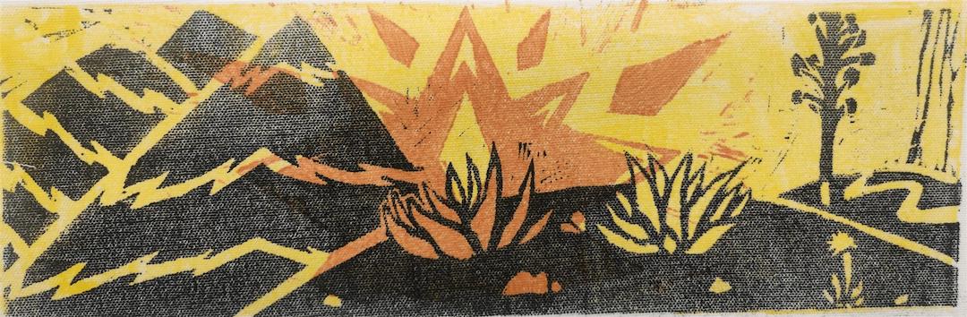2023 Student Art Exhibition Sol Sobre la Montaña (2023) Linocut print on fabric 4’’h x 18’’w NFS < Previous Artist Next Artist >