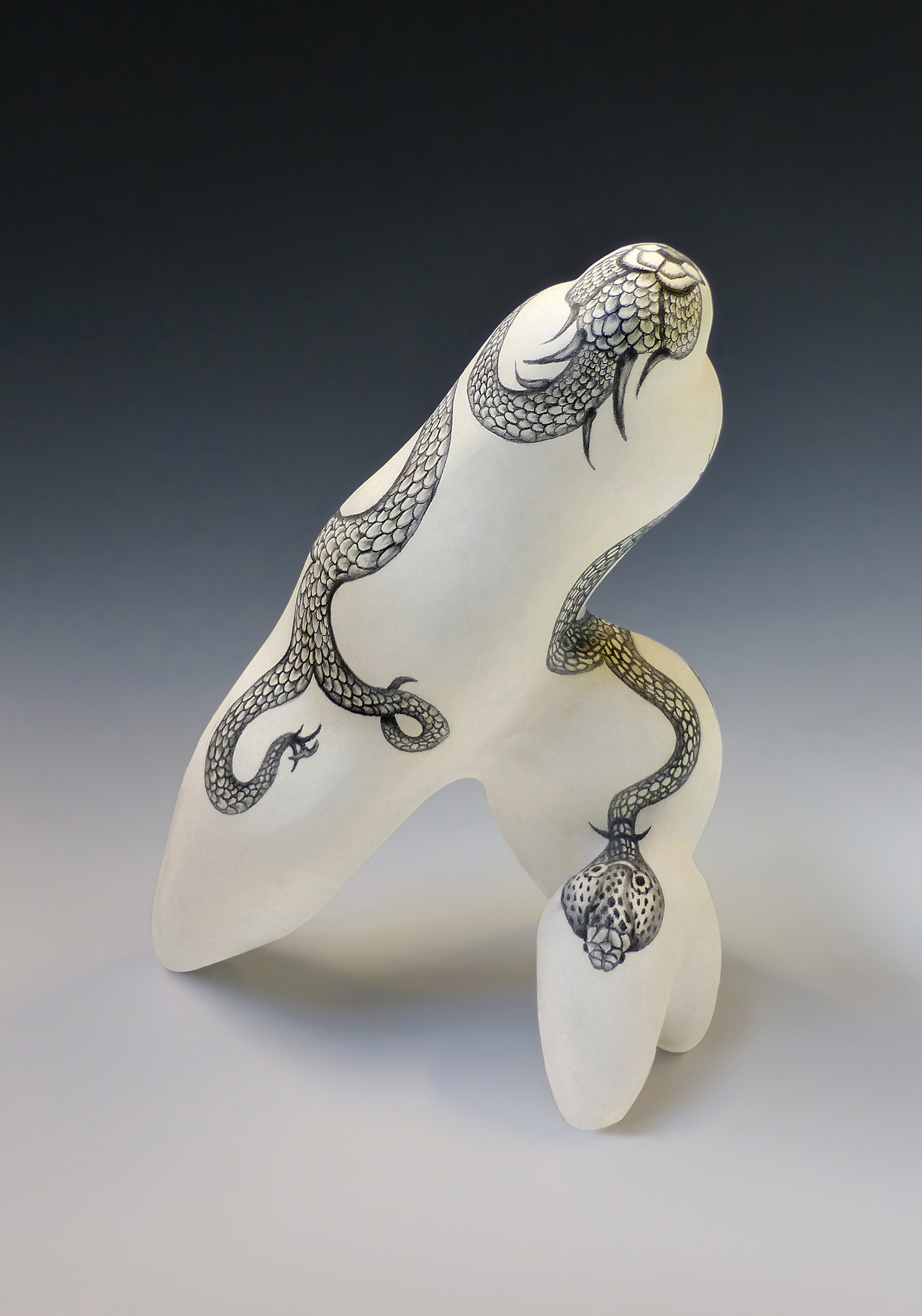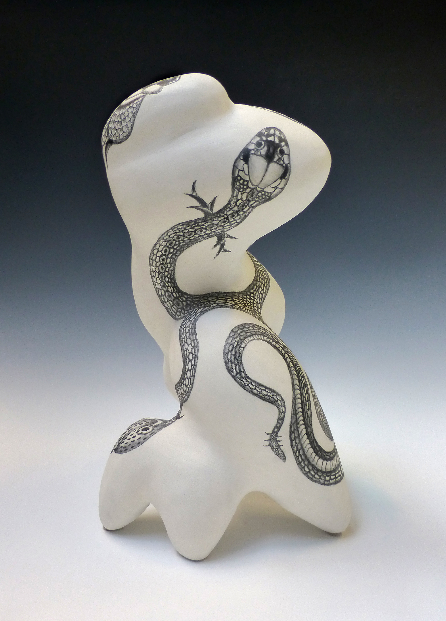 The works in this series are graphite drawings on ceramic bisqueware: Bryan Hiveley builds the sculptures, and Judith Berk King creates the drawings.