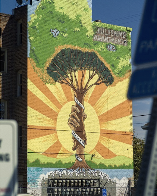 In addition to the Artist Talk, the LH Horton Jr Gallery organized an online Survey of Public Art to provide resources and information for our students and the community on the various types of projects and organizations involved in the field of public art. Featured organizations include prominent local, regional, and national government agencies and non-profit organizations. The Survey presents public works that focus on building civic pride and engaging with community, such as the Stockton SEED Mural Project. The Survey also presents public works that preserve our heritage and shared human experience, such as the Cesar Chavez Memorial in Sacramento by Lisa Reinertson. Particular attention is given to the movement to build new public monuments that support, reflect, and represent America’s diverse cultural communities.