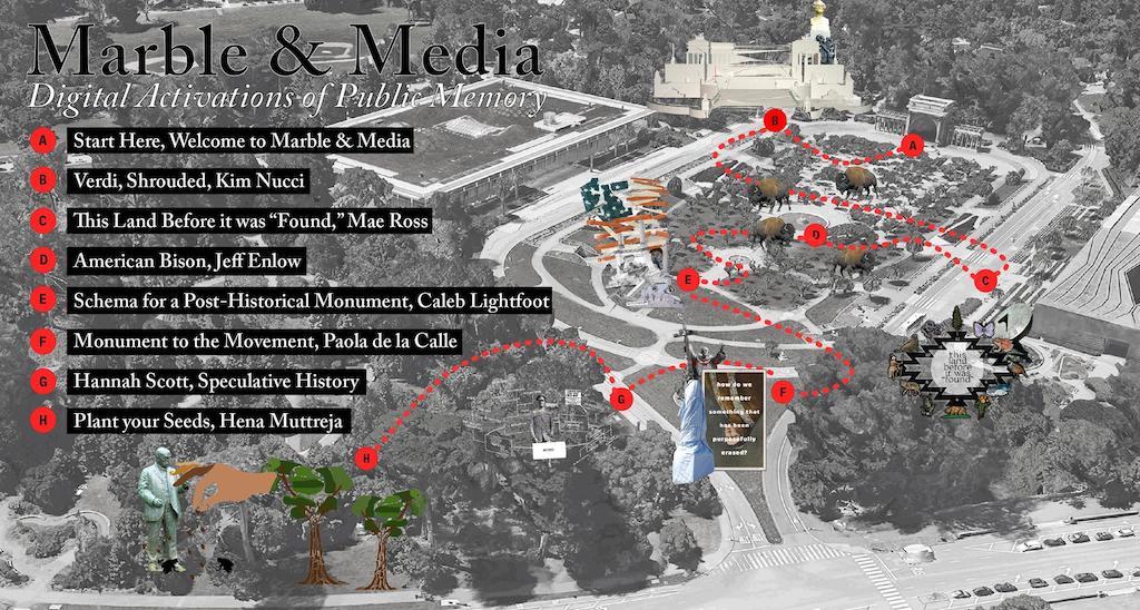 Marble and Media: Digital Activations of Public Memory is a ZERO1 creative laboratory co-led by artists Cheyenne Concepcion and Camila Magrane in collaboration with New Monuments Taskforce and emerging artists from across the Bay Area. The laboratory workshops led by Concepcion and Magrane empowered artists to use New Media tools to reckon with toppled monuments at a site of protest in San Francisco. The work made in the workshop was presented as a “guerilla” public exhibition/AR Walking tour. Below is one project example:
