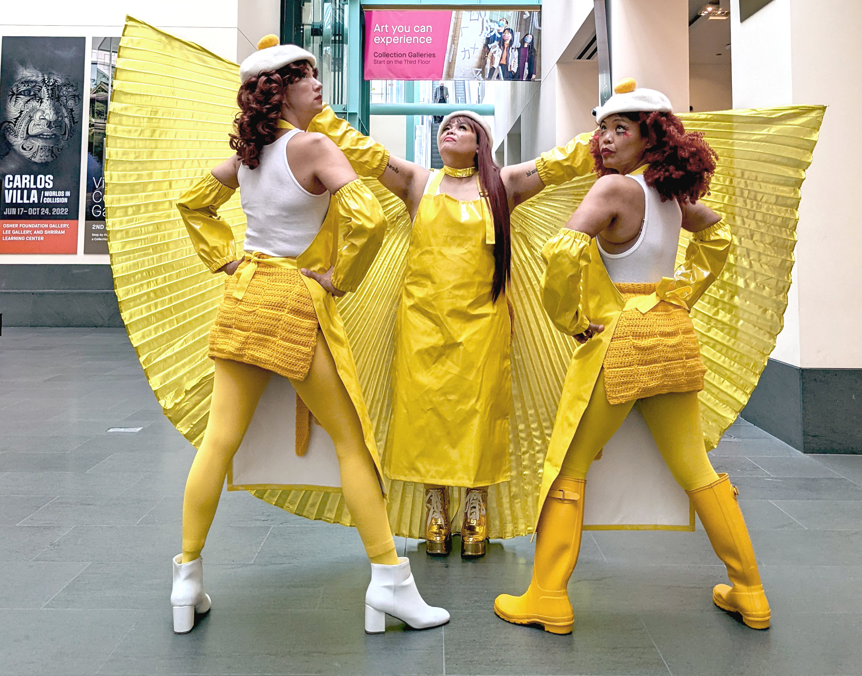 For over 15 years, Reanne “Immaculata” Estrada https://publicmattersgroup.com/who-we-are/#team (born in Manila, lives and works in Los Angeles), Eliza “Neneng” Barrios https://www.elizabarrios.com/ (born in San Diego, lives and works San Francisco), and Jenifer “Babs” Wofford https://wofflehouse.com/ (born and lives in San Francisco, grew up in Hong Kong), have worked collaboratively as Mail Order Brides/M.O.B., a trio of Filipina-American artists engaged in an ongoing conversation with culture and gender. While other mail order brides are conventionally perceived as ideal obedient domestics, it has not escaped this trio’s attention that, acronymically speaking, “Mail Order Brides” abbreviates down to a more sinister acronym that informs the darker subtext of their operations.
