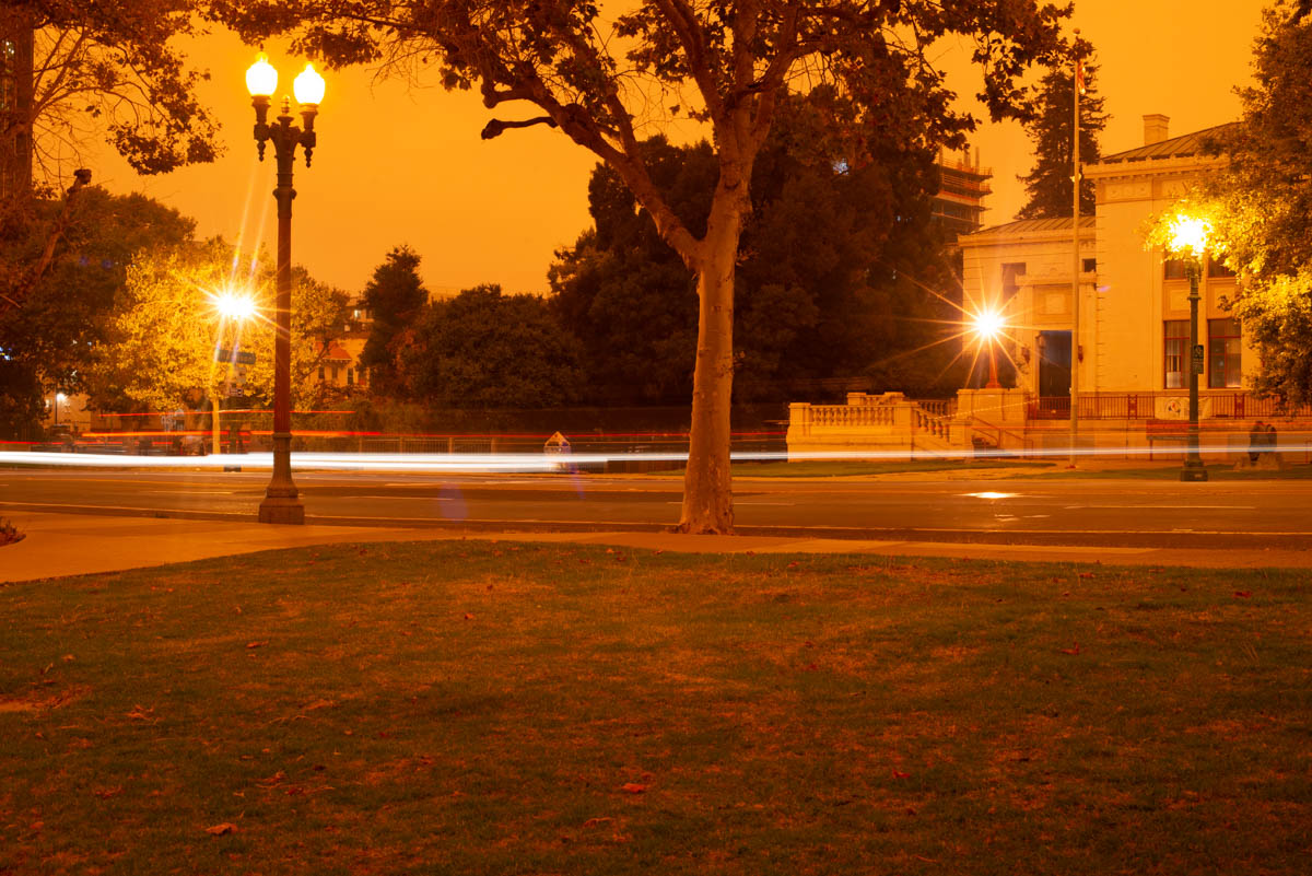 We walked outside and into an apocalyptic morning. The sun was gone. I brought my camera to document this unbelievable experience. These are images taken between 7:30 am and noon. As I drove around Oakland, car headlights remained on. I had to use a tripod and my exposures were long. I was wearing two masks and encountered people wearing respirators. I still haven’t recovered from this day.