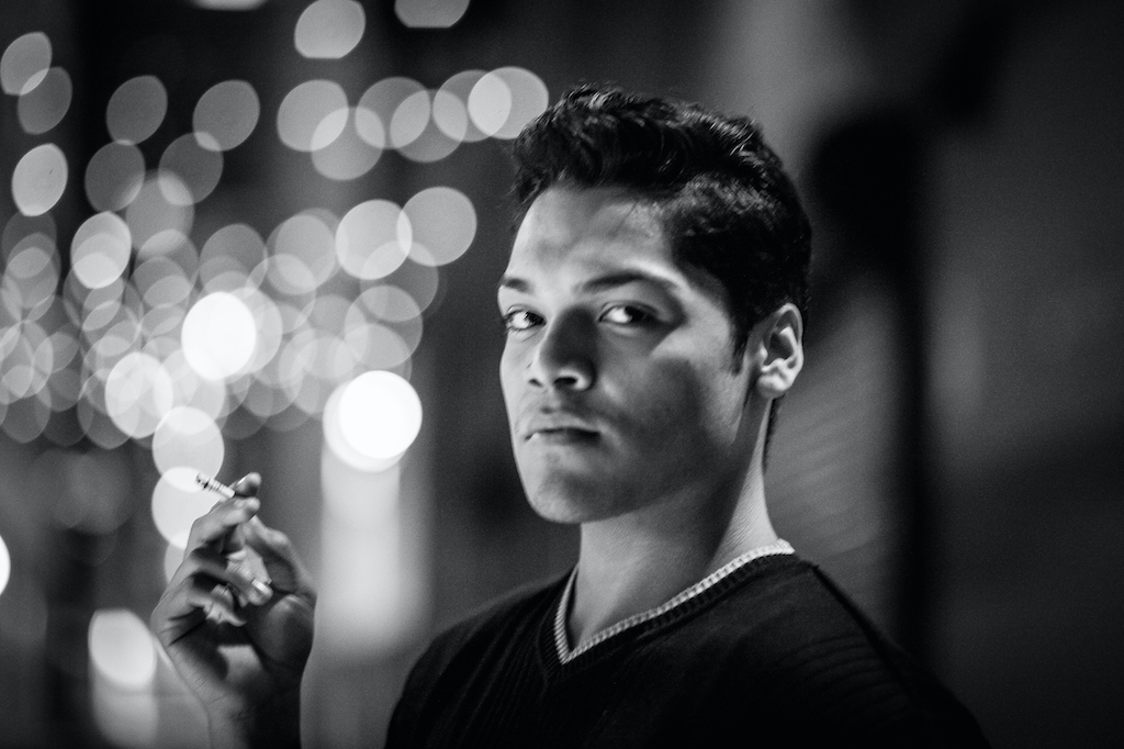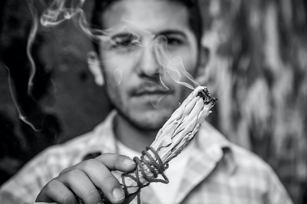 Seminole/Choctaw man smoking in the Alley off Main Street in Los Angeles, CA.
