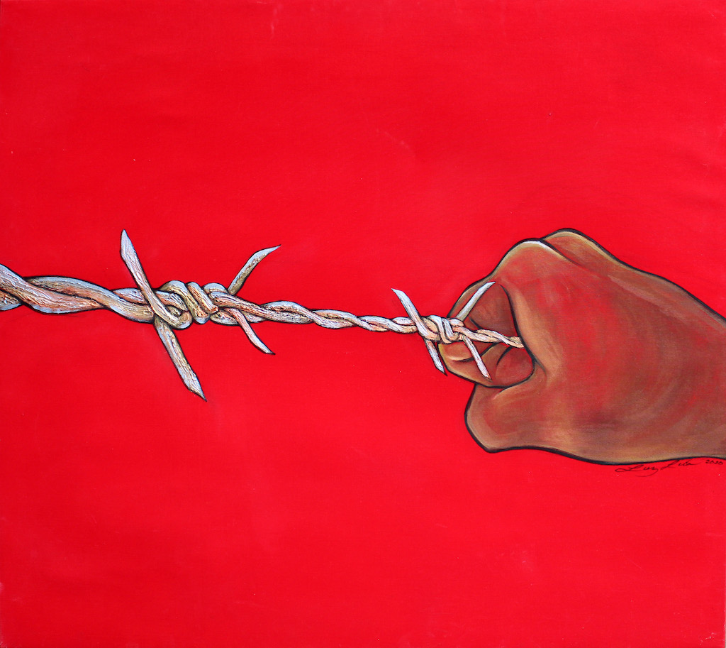 Issues of prejudice and humanity abuse are depicted in the earlier pieces, “Basta!” and “Life within the Vine” series. They portray issues of children incarcerated at the border and farmworkers taken advantage of by corporations and farmland owners.