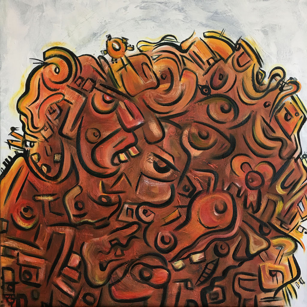 My art deals with the unexpected moments in life which are meant to hypnotize, to keep the viewer constantly in wonder of what’s going on as they delve deeper into the layers of movement. The colors and strokes create a sensation of play that tell a story with the use of simplified figures where one is able to create their own story within each image that they see. Abstract thoughts navigate the brush to create an image of what cannot be heard but rather experienced.
