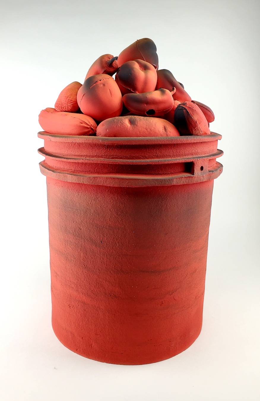 José M. Flores Nava (he, him, él) is a Southern California based artist. He was born in Mexico and moved to the U.S. at the age of 12 years old. While interest in the visual arts came at an early age, it was not until college that he decided to pursue art as a field of study. Using a combination of ceramic hand building techniques, slip cast objects, and brightly colored surface treatments, he creates sculptures that are reflections of the undocumented immigrant community. He focuses on the relationship the undocumented community, products of labor and familiar objects that we often take for granted. The sculptures are sometimes nested in forms associated with outdoor utilitarian needs, as well as nested in domestic vessels’ consisting of platers and bowls. Echoing the commercial phrase “farm-to-table,” Nava’s work asks the viewer to consider not only the means that sustain our society, but also, the individuals whose labor said society depends on. José Flores Nava holds a Bachelor of Fine Arts and a Master of Fine Arts from California State University, Fullerton. He is a DACA recipient and is currently pursuing a career as an educator. Places he has exhibited include, Grand Central Art Center, Irvine Fine Arts Center, American Museum of Ceramic Art, Riverside Art Museum, Brea Gallery, ALMA’S RVA, Eutectic Gallery, and Norther Clay Center and Rio Hondo Art Gallery.