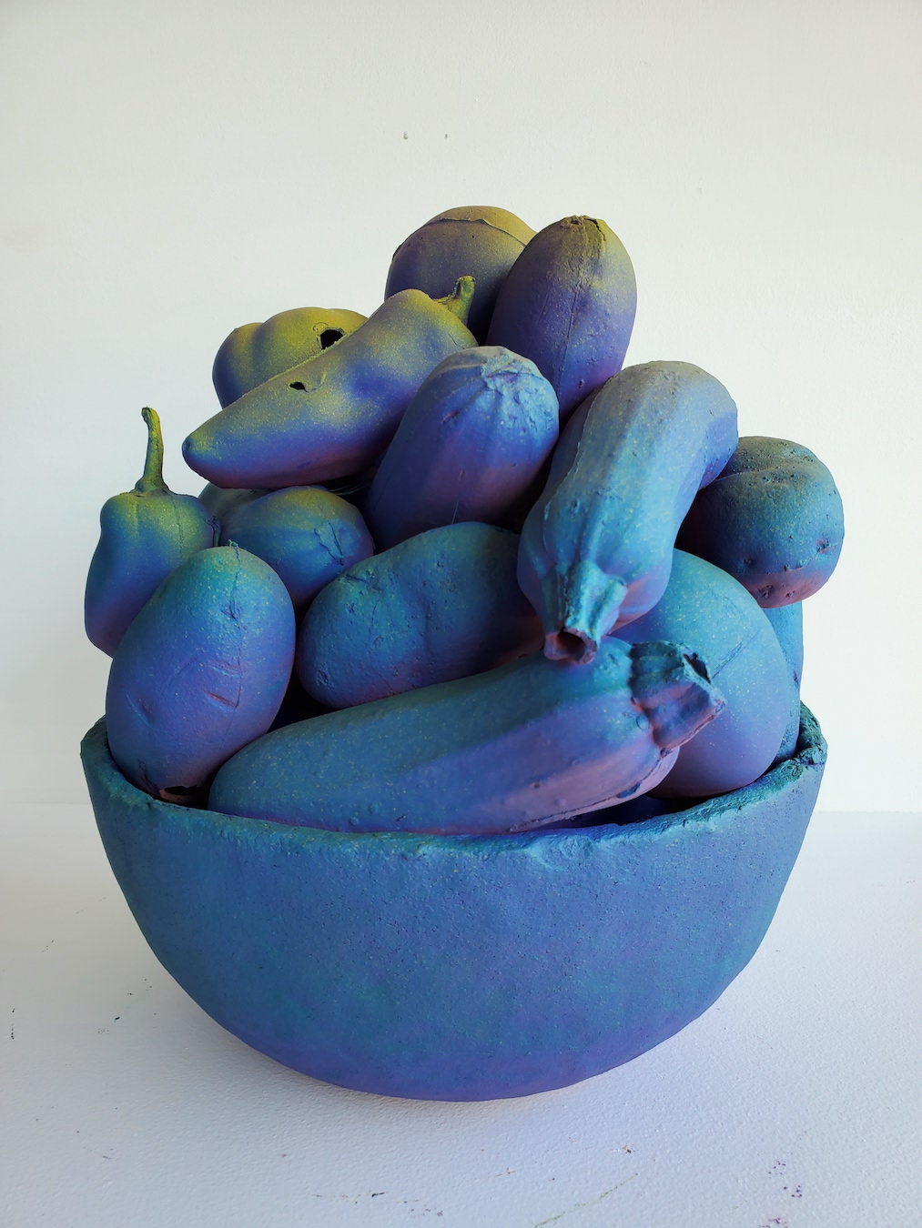 As a potter, it’s my job to give meaning to the vessel. Vessels that are used as a substitute to the human body; vessels that resemble outdoor utilitarian objects; or vessels that echo the phrase “farm to table.” As an immigrant, it’s my duty to use my voice to speak about the undocumented laborer. The laborer that grows, picks and cooks your food. The laborer that went from being “low-skilled” to “essential.” The laborer that fits the general consensus that undocumented immigrants do the jobs Americans don’t want to do. The laborer that is talked about using statistics rather than their humanity. The laborer that gets left out from a lot of conversations and a seat at the table. As a maker, I chose to make slip-cast vegetables in order to remove the familiar produce we know. Produce cast with stoneware clay making them strong yet fragile. Produce brightly painted to make their presence known.