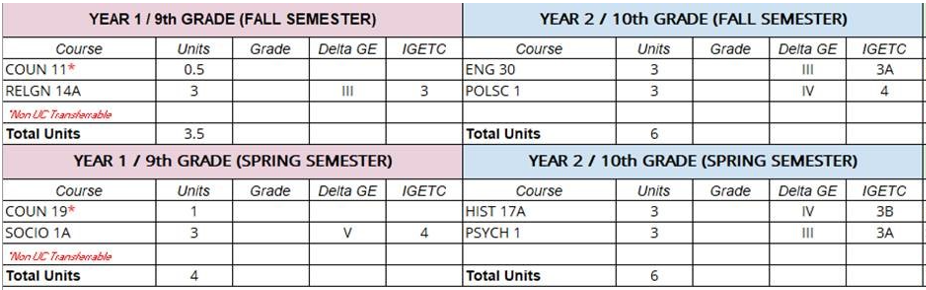 Please note that the roadmaps are only sample roadmaps and are subject to change. Option 1: Interdisciplinary Studies, Mathematics and Science Option, AS Master Plan Option 2: IGETC Master Plan